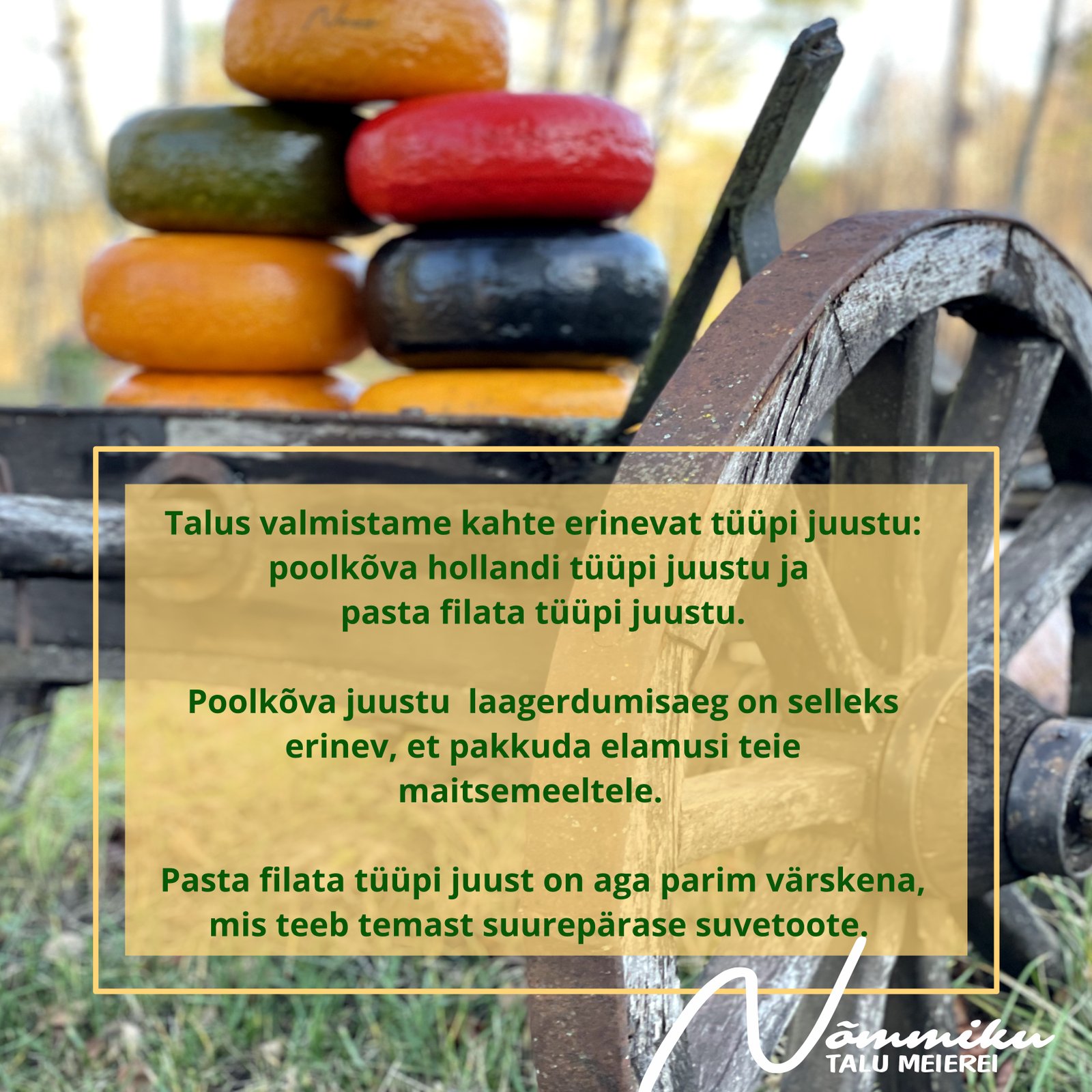 Täpsem ja ajakohasem info on leitav meie näoraamatu lehekülgedelt Nõmmiku Talu Meierei ja Nõmmiku Talu Meierei juustuvalik.